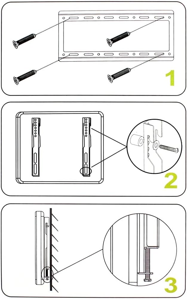 Specification:Type: FixedApplicable size: 14-42 Material: cold rolled boardDistance from wall: 25-20MM / 0.98425 Maximum capacity: 25KG / 55.125LBTilting angle up and down: Not applicableVESA standard pitch: 75mmx 75mm, 100mm x 100mm, 200mm x 200mmTilting angle left and right: not applicableColour: BlackAppearance: High-strength steel structure combined with streamlined stamping design is not only beautiful, but also saves space.Pitch length: 50-200mmHole pitch width: 50-200mmEasy to adjust and quick to installfeature:The -piece panel is simple and easy to operate.Automatic telescopic adjustment design, telescopic and rotatable.The key parts are thickened, the structure is stable, and the ability to bear weight is strong.PC material design has good flexibility, scratch resistance and beautiful appearance.The high-strength rotating shaft can withstand multiple rotations without deformation.The safety screw design ensures no deviation under load.Suitable for most high-definition TV flat-panel TVs, LCD TVs, LED TVs.Applicable to homes, entertainment venues, public places and commercial places.notes:-When purchasing, please check whether the hole spacing of the TV is consistent with this product, and whether the weight is within the tolerance range of this product.-The number of product accessories will vary, but it will not affect installation and use.Package Included1 x TV wall bracket1 x Installation accessories set