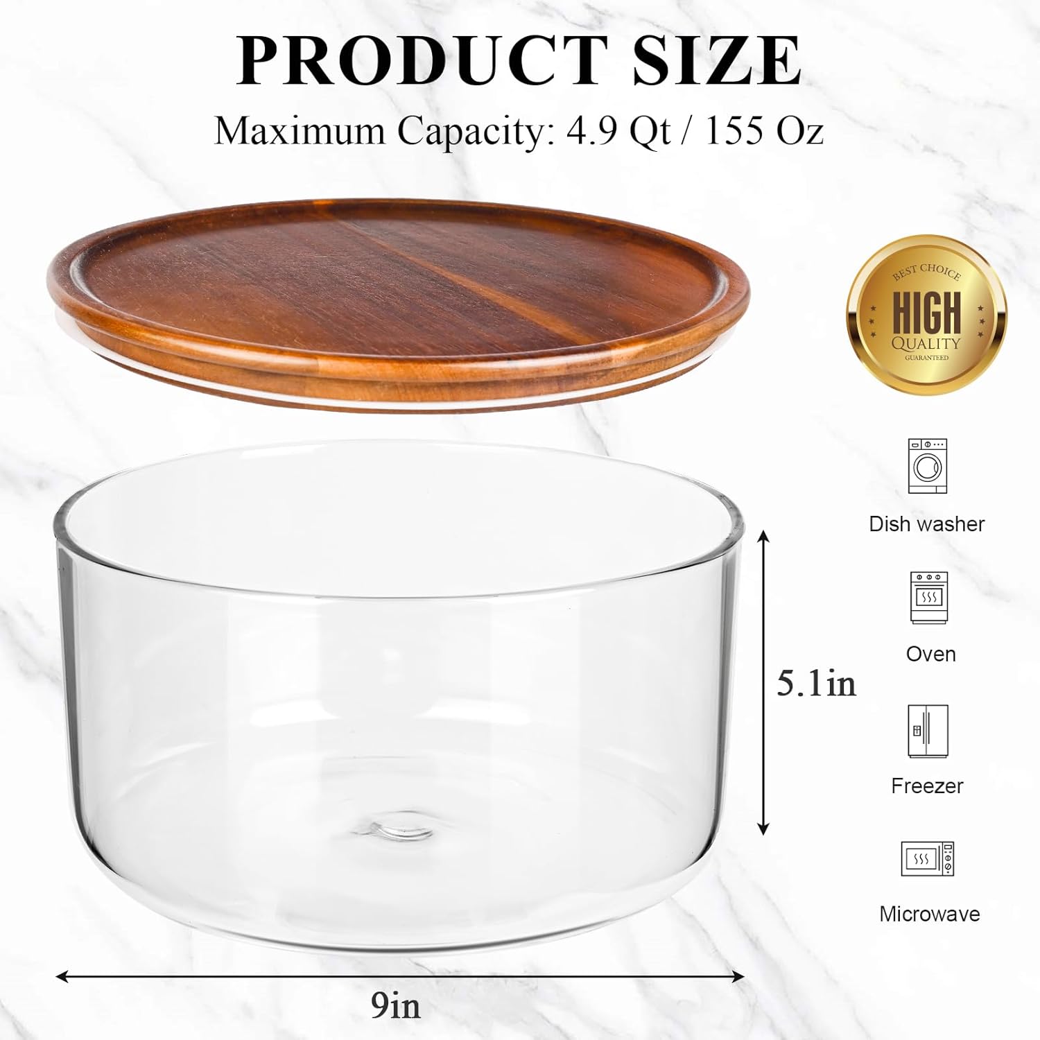 155 oz Large Glass Trifle Bowl with Acacia Wood Lid - Glass Salad Bowl, Versatile Serving Bowls for Cake, Salad, Fruit, Baking, Dessert, Meal Prep, Storing, Microwave & Oven Safe, BPA Free