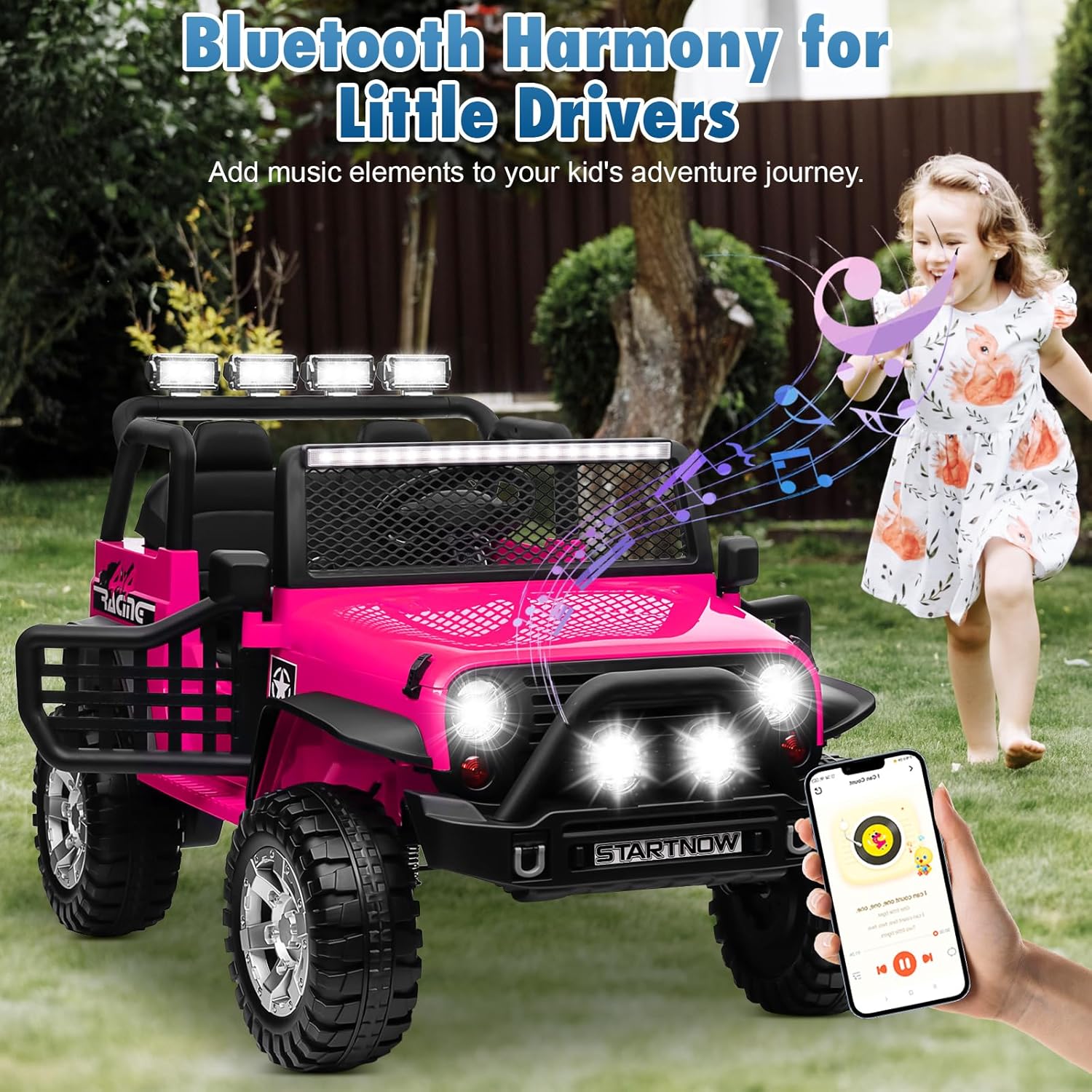 • ๐ŸŽฎMultifunctional Kids Truck - Equipped with built-in Music, Mp3, Bluetooth, TF Card and USB Port, you can play your kids favorite music while riding and add music elements to your kids adventure journey. Cool LED headlights, taillights and searchlights add a dazzling touch to every ride. Convenient one-button start, horn, power display, bringing real driving experience to your child.
