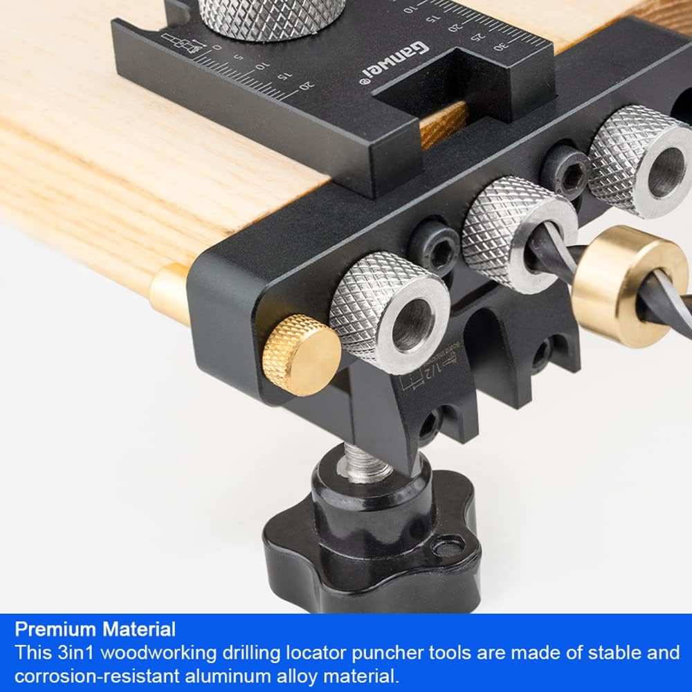surf and hardened structure give high strength and extend service lifespan. 【Screw Clamping Design】: The screws tightening structure for convenient fastening the drill guide to the wood, helping firmly fix your workpiece without damaging your application. 【Deformable Design】: With disassembled and repositionable assembly for drilling pre-built and round wood tn holes after repositioning. Mulle punching and assembly methods are available to meet your working requirements. 【Accurate Scale】: engraving scale on the surf, clear scale and not easy to wear, easy to adjust the drilling height and hole depth. 【Utility Accessory】: Equipped with 8mm, 10mm, and 15mm drills to meet your requirements for different hole diameters. The dowel locator can be used perfectly with a three-in-one woodworking punching locator. 【Wide Applications】: Easy to operate, quick positioning for different thicknesses of wood, easy to produce ints. Widely used for splicing and punching various plates, suitable for furniture production or woodworking. Specifications: Name: Holes Drilling Locator Set Material: Aluminum alloy Type: Set A, Set B (optional) Scale Marking: Engraving Surf s: Anodizing Drill Bit: 8/10/15mm Package size: 175 * 175 * 65mm / 6.89 * 6.89 * 2.56in Package weight: Set A: 600g / 1.32lb Set B: 800g / 1.76lb Packing List (Set A): 1 * Punch Positioner 1 * Replable 10mm Drill S-leeve 1 * 10mm Drill Bit 2 * 8mm Drill Bit 1 * 15mm Drill Bit 3 * Wood Dowel 2 * Wrench OR Packing List ( Set B): 1 * Punch Positioner 1 * Replable 10mm Drill S-leeve 1 * 10mm Drill Bit 2 * 8mm Drill Bit 1 * 15mm Drill Bit 3 * Wood Dowel 2 * Wrench 2 * Embedded Part Puncher