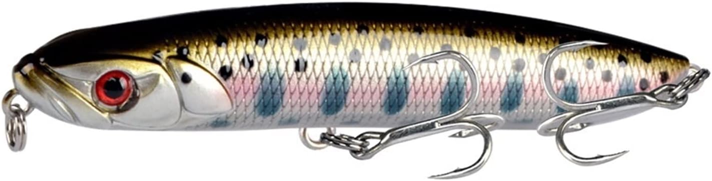They create life-like swimming actions in water! Bright colors, to attract big fish!3D eyes make it a powerful catching tool!Type: Pencil bait Fishing LureSize: 9.5cm, 18gDiving Depth: SinkingQuality hooks: 2x Strong Trible HooksColors: Multiple colourTarget Fish: Pale chub,bass,Pikes,Yellowcheck carp,Chinese perch,Topmouth culter