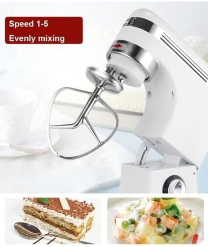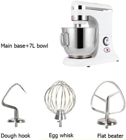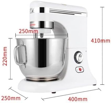 Introduction: The multi-function Food Stand Mixer can be used to mix flours, dough, stuffing, beat eggs, etc. It has 9-speed adjustable. Users can choose speed to meet different mixing requirement. Equiped with ith 7L stainless steel large capacity bowl, flat beater, dough hook and whisk. Specification: Model CS-B7A Power Supply 220V / 50Hz Motor Power 325W Mixing shaft speed 9 stepless speed adjustable Dough kneading 0.5-0.8kg/time Cream 1.5kg/time Bowl capacity 7L Machine size 400 * 250 * 410mm Weight 14kg / 16kg