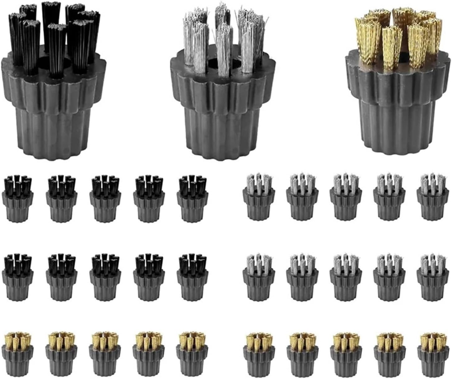 Efficient Cleaning: Brushe set is specially designed for cleaning small spaces, corners, tile grout, and other hard-to-reach areas, allowing you to easily and efficiently complete a variety of cleaning tasksDimensions: The bottom interface of steam cleaner brush heads measures 8mm/0.31 inches, featuring an M8 specification design compatible with various cleaning equipment modelsEasy To Use: Simply attach the desired brush head to the steam cleaner and start cleaning. The steam cleaner brush heads effectively remove stubborn stains, grease, and dirtWide Application: Steam cleaner brush head is suitable for surfaces such as tiles, cement, wooden furniture, and metal products. The steam cleaner accessory can clean walls, corners, window gaps, bathroom floor tiles, and moreSize: M8The steam cleaner accessory set includes nylon brush heads, brass brush heads, and steel brush heads.Suitable for use on various surfaces such as tiles, carpets, and indoor decorations.The steam cleaner brush head set effectively helps remove dirt, stains, and grease.Package Contents:10 * nylon brush heads10 * brass brush heads10 * steel brush headsOnly the above package content, other products are not included.Note: Light reflection and different displays may cause the color of the item in the picture a little different from the real thing. The measurement allowed error is +/- 1-3cm.==========High-concerned chemical : NoneSpecification 1 : Steam Mop Brush HeadsSpecification 2 : Brass Brush HeadsSpecification 3 : Steam Cleaning BrushSpecification 4 : Nozzle Bristle BrushesSpecification 5 : M8 Copper Brush