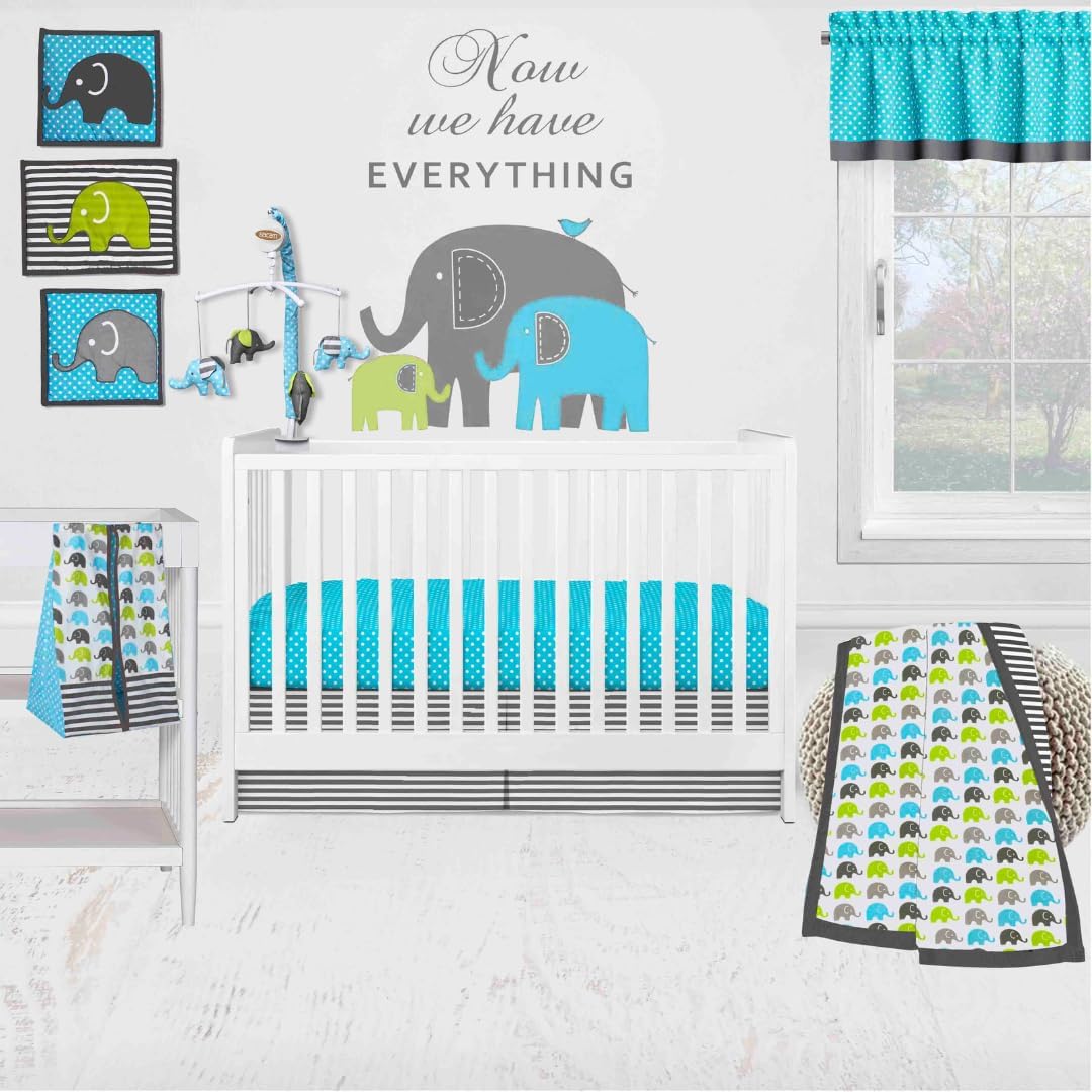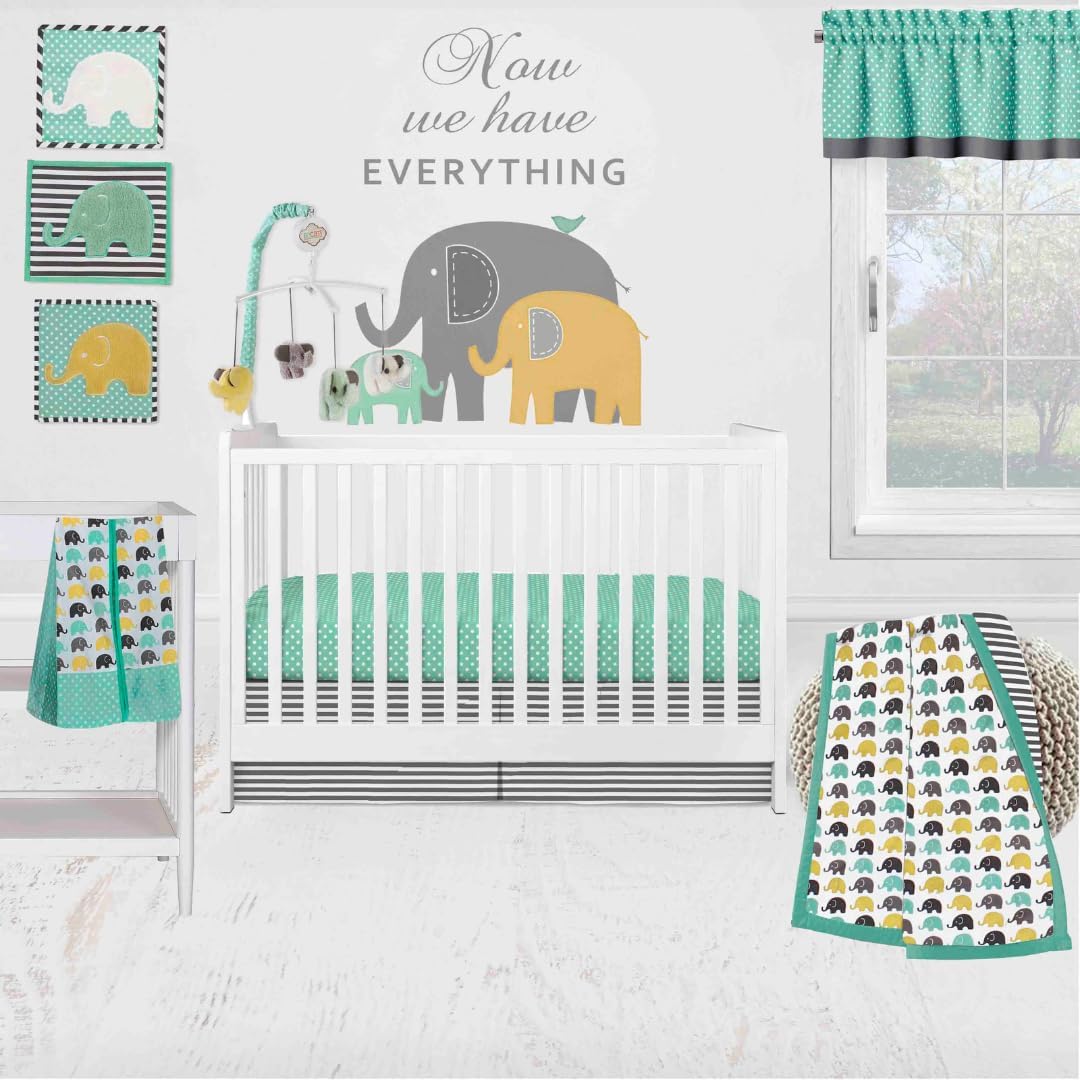 | Included Components | 1 reversible crib comforter, 2 fitted crib sheets, 1 crib skirt, 1 diaper caddy, 1 musical mobile, 1 window valance, and 3 wall hangings |
