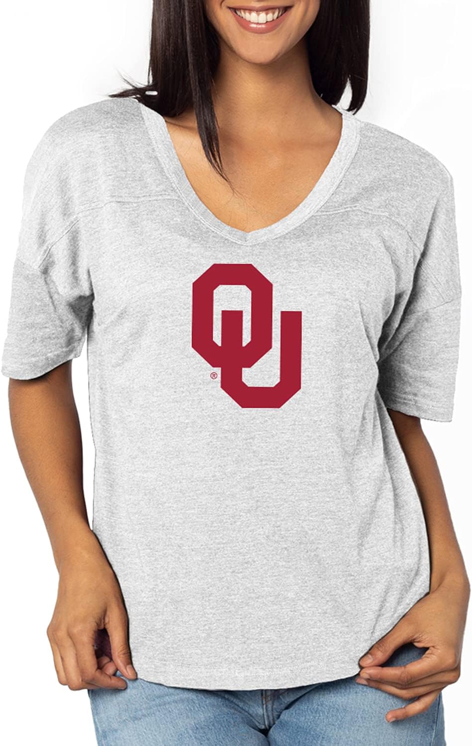 Look ready for game day in this jersey inspired silhouette. Feminine details include a rounded hem, yoke, v-neckline and longer short sleeves. Support your favorite team while staying on-trend with the NCAA officially licensed graphic.