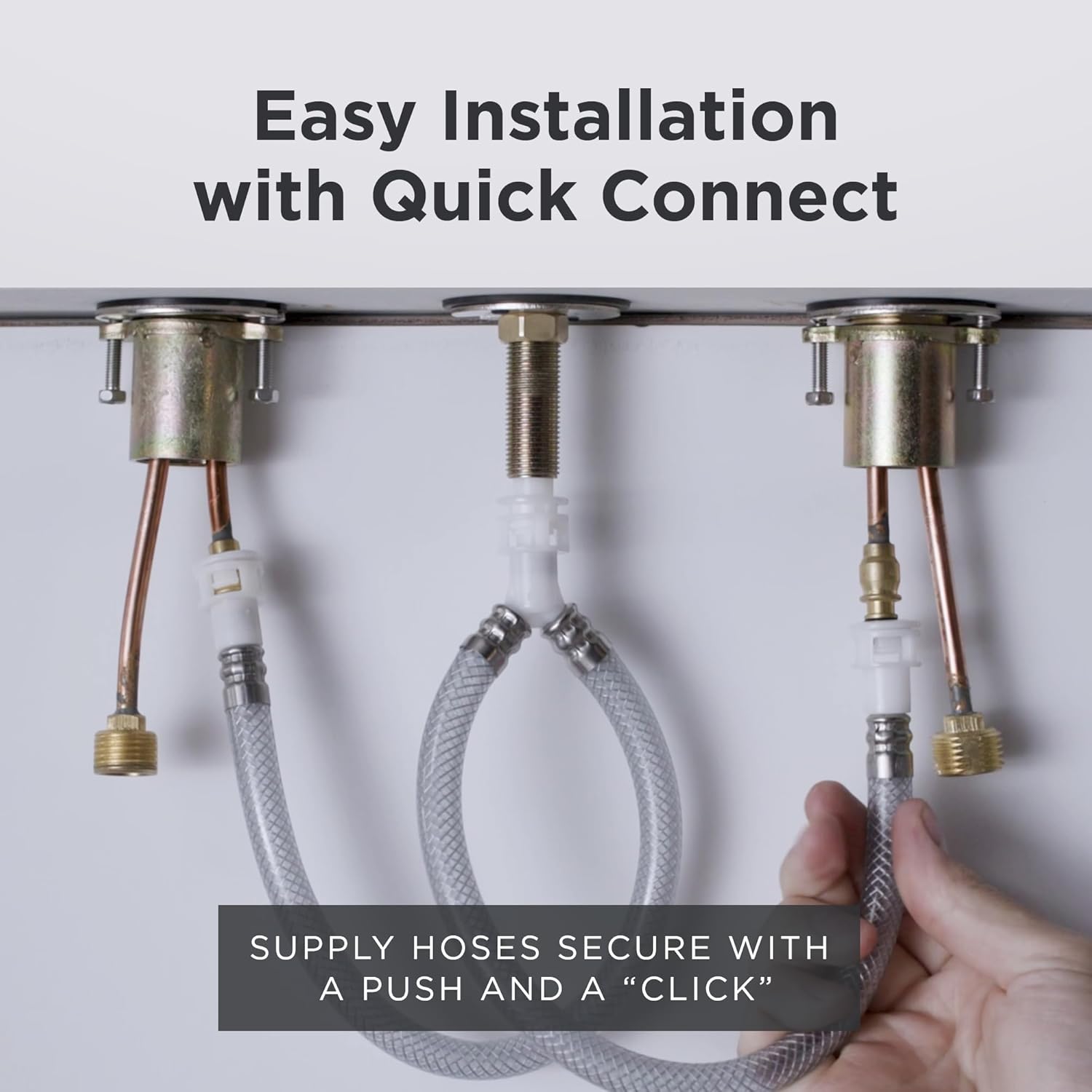 Product Description Inspired by fluid forms, the arched curves and linear handles of the Vaughn Widespread Bathroom Sink Faucet make this design a great addition to any bath space. Featuring an all-metal faucet body and lasting finish options, this sink faucet incorporates ceramic disc cartridges to offer drip-free performance and effortless turning operation. ADA-compliant, two-handle design allows for ease of use, and precise temperature and volume control. WaterSense certified to conserve water, the laminar flow aerator delivers a crystal-clear, 1.2 gpm flow rate that saves on utility costs while delivering a more hygienic, low-splash stream. Assembly includes all-metal touch-down drain and all mounting hardware needed for fast, complete installation. Optional hot and cold temperature indicators are included to meet multifamily and hospitality specifications. This bathroom faucet's dynamic and sophisticated design fits well in any bathroom environment. From the Manufacturer For nearly 20 years, the kitchen and bath industry has known Danze as a leader in product design and beautiful styling. What industry professionals and homeowners may not have known is that Danze has a sister company, Gerber – an 85-year-old manufacturer of some of the highest performing, most reliable products on the market. To best meet the diverse and ever-changing needs of home products, Danze has transformed to be Danze by Gerber, a perfect blend of the handcrafted, trusted performance of Gerber on the inside and beautiful design on the outside. The Danze by Gerber product combination can be found in a range of kitchen and bath faucets, bath accessories and shower systems. A thoughtful balance of form and function. Inspired, beautiful design on the outside. Handcrafted, trusted performance on the inside. A combination that results in true value and commitment. You can call it a breath of fresh air. We call it Danze by Gerber.
