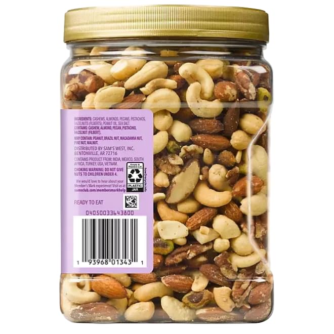 Indulge in premium quality snacking with Lightly Salted Deluxe Mixed Nuts. This generous 34-ounce container offers a perfectly balanced blend of premium mixed nuts, each carefully selected to deliver the ideal combination of flavors and textures. The light salt coating enhances the natural taste of the nuts without overpowering their inherent goodness. Perfect for entertaining guests, keeping at your desk for a quick energy boost, or adding to your favorite recipes. These mixed nuts are a convenient source of protein and healthy fats, making them an excellent choice for health-conscious snackers. The resealable container helps maintain freshness and makes it easy to store or transport these delicious nuts. Whether you're hosting a party, need a nutritious snack option, or want to keep your pantry stocked with versatile ingredients, these deluxe mixed nuts are an excellent choice.