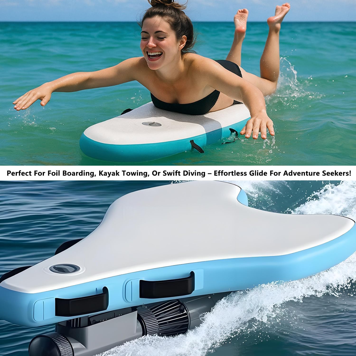 Product Description:Upgrade Your Water Adventures with the 2025 Floating Electric Surfboard!Whether you're a beginner learning to eFoil or an experienced rider craving hydrofoil thrills, our dual-mode electric surfboard delivers unmatched versatility. Switch seamlessly between a stable paddleboard (for low-speed practice) and a powered hydrofoil board (for high-speed surfing) – perfect for lakes, pools, or coastal waves.Why Choose Our Electric Surfboard?✅ Powerful 500W Brushless Motor – Smooth, efficient propulsion for foil boarding, kayak assistance, or diving (3-10 km/h speed control).✅ Long-Lasting 10,000mAh Battery – 40-130 mins runtime for snorkeling, family games, or extended surf sessions.✅ Thickened and ultra-durable brushed mesh material – Shockproof shell resists corrosion, drops, and rough play – Perfect for beach trips and ocean use.✅ 360° Adjustable Handle – Detachable, ergonomic grip for effortless maneuvering, whether towing gear or teaching kids to swim.SpecificationsMotor Power: 500WBattery Power: 10000 mAhDiving Depth: Max 40mCharging Voltage: 25.5VNominal Voltage: 22.2VDC motor model: Brushless 6050Endurance time: 40-130 minutesWater blade no-load current: 3.5 AhWater blade underwater load current: 20 AhUnderwater blade speed: 1800-2700 rpmSpeed gear: 9-speed gear modeSpeed: 3-7km/hPerfect For: Beginners mastering eFoil surfing Families enjoying pool parties or lake days Adventure seekers exploring coastal waves or diving spotsIncludes: Floating Electric Surfboard, Detachable Handle, Air Pump (for adjustable buoyancy), underwater booster, and Charger.