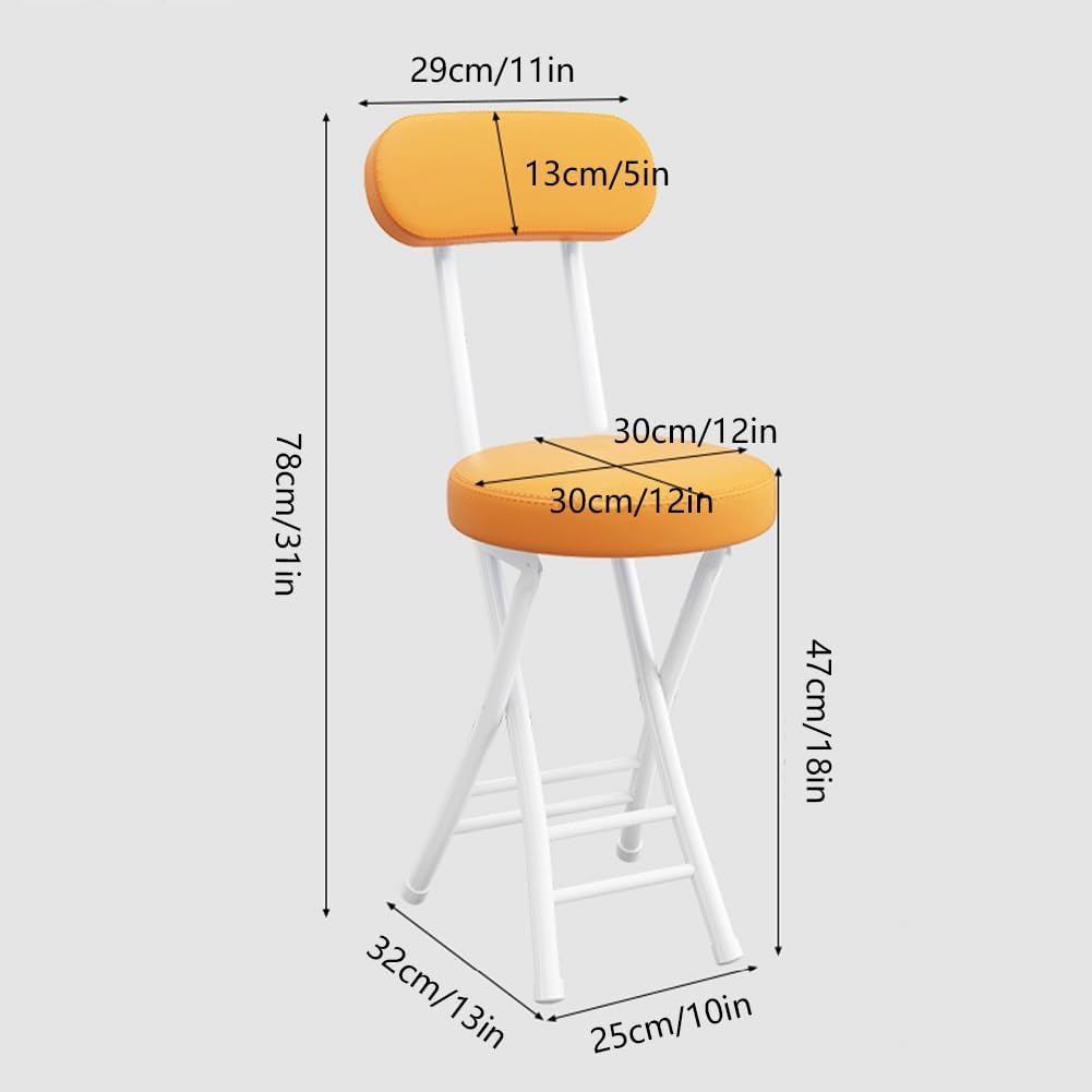 Folding stool with thickened steel tube and leather round cushion, metal frame, load-bearing stability, not tilted and shaking, soft padded seat, soft and comfortable, simple and modern appearance, is a must-have adult home furnishing items!Name, Portable Folding StoolColor, black , light brown , white , green , brown , orangeOpen seat height, 47cm/18inOpen size, 25x32x78cm/10X13X31inFolded thickness, 7cm/3inFolded size, 32x7x88cm/13x3x34.6inLoad capacity, 150kg/330lbWeight, 2kg/4.4lbFolding stool with comfortable backrest, relieve back fatigue, thickened feet, keep the whole stable, quiet and protect the floorFolding stool received without installation, ready to use, fold up, do not take up space, portable storage, used in the kitchen, dormitory, apartment, camping, indoor and outdoor various scenesProducts are measured manually, there is a reasonable error, and due to different monitor settings, may lead to differences in product color, please prevail in kind!