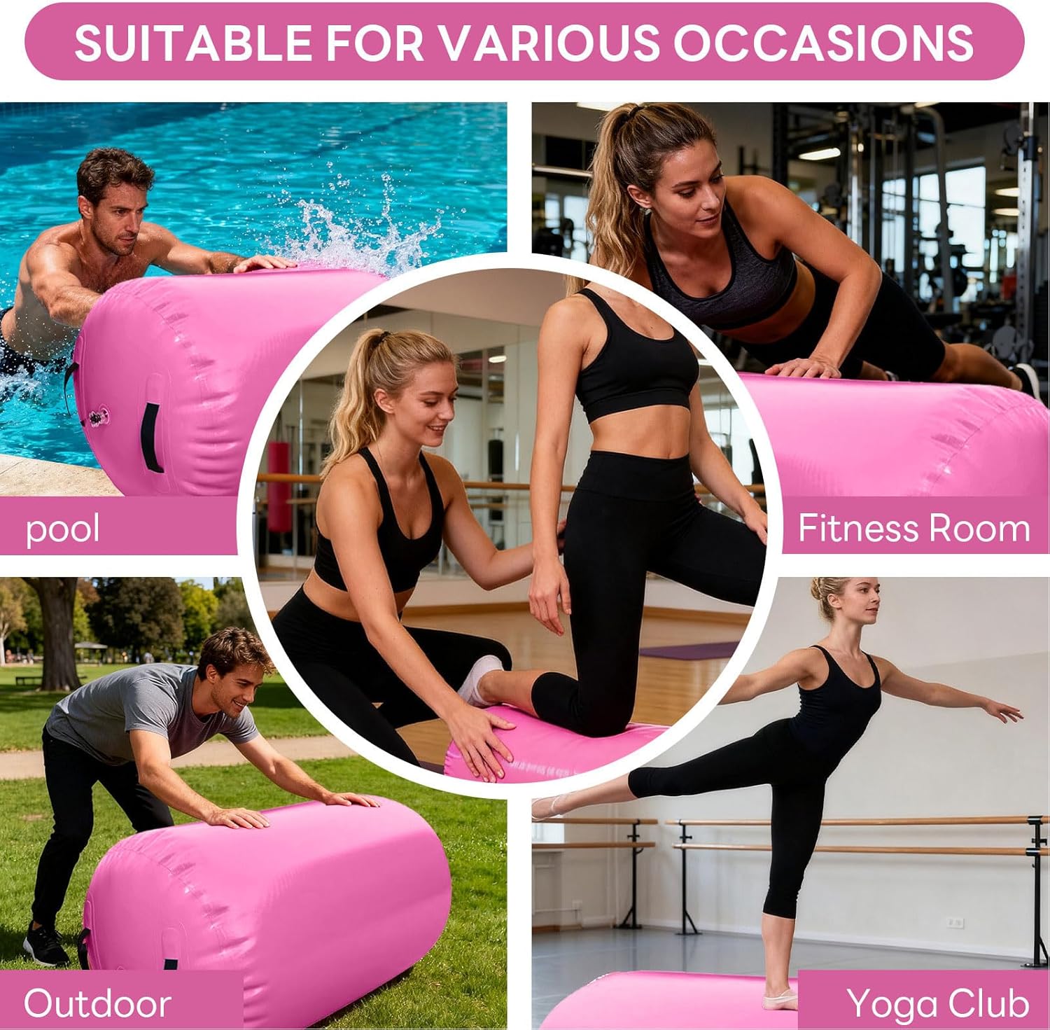 Specification: Item Type: Gymnastics Air Roller Material: PVC Inflated Size: Approx. 0.7x0.9m / 2.30x2.95ft PackageList: 1 x Gymnastics Air Roller 1 x Air Pump 1 x Air Tube 1 x Air Nozzle 1 x Instruction Manual Notice: Please make sure to use it on a clean surface away from sharply objects and open flames.