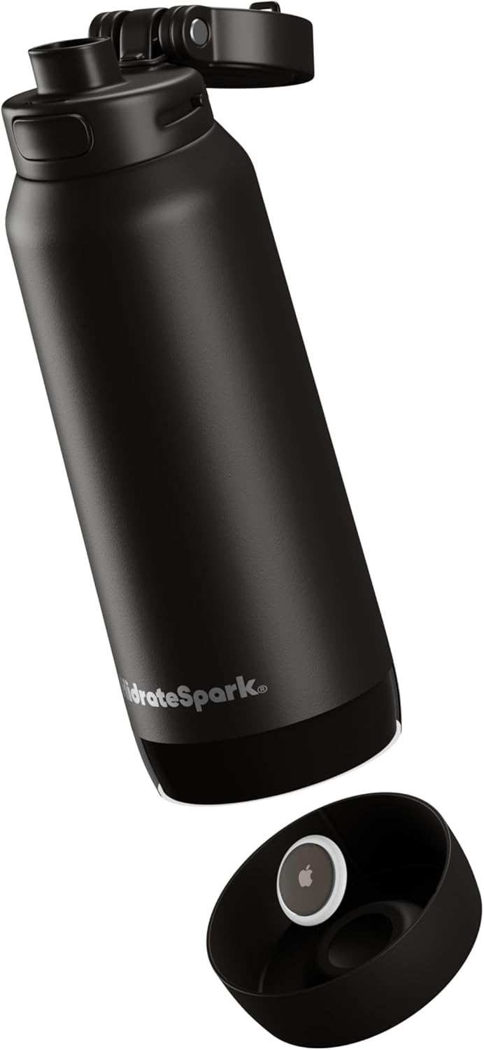 Stay hydrated with the 21 oz HidrateSpark PRO 2 – Smart Ready Bottle, crafted from premium recycled stainless steel for durability and sustainability. Double-wall vacuum insulation keeps your drink cold for up to 24 hours, while a silicone boot with a dedicated compartment for an Apple AirTag helps ensure you’ll never lose track of your bottle. Simply use the Find My app to locate it anywhere, anytime. Designed for convenience and versatility, this bottle features a large carry handle and a narrow base to fit most cup holders, making it the perfect companion for your daily adventures. Pair it with your choice of a chug or straw lid for a personalized drinking experience. Want to take it to the next level? It is fully compatible with the PRO 2 Sensor (Small). Swap the silicone boot with the PRO 2 Sensor to transform your bottle into a smart hydration tracker. Track your water intake, enjoy customizable glow reminders, and sync seamlessly with the HidrateSpark app to set hydration goals and monitor your progress. Plus, with built-in Apple Find My support in the PRO 2 Sensor, you’ll never lose your smart bottle. Apple AirTag and HidrateSpark PRO 2 Sensor sold separately.