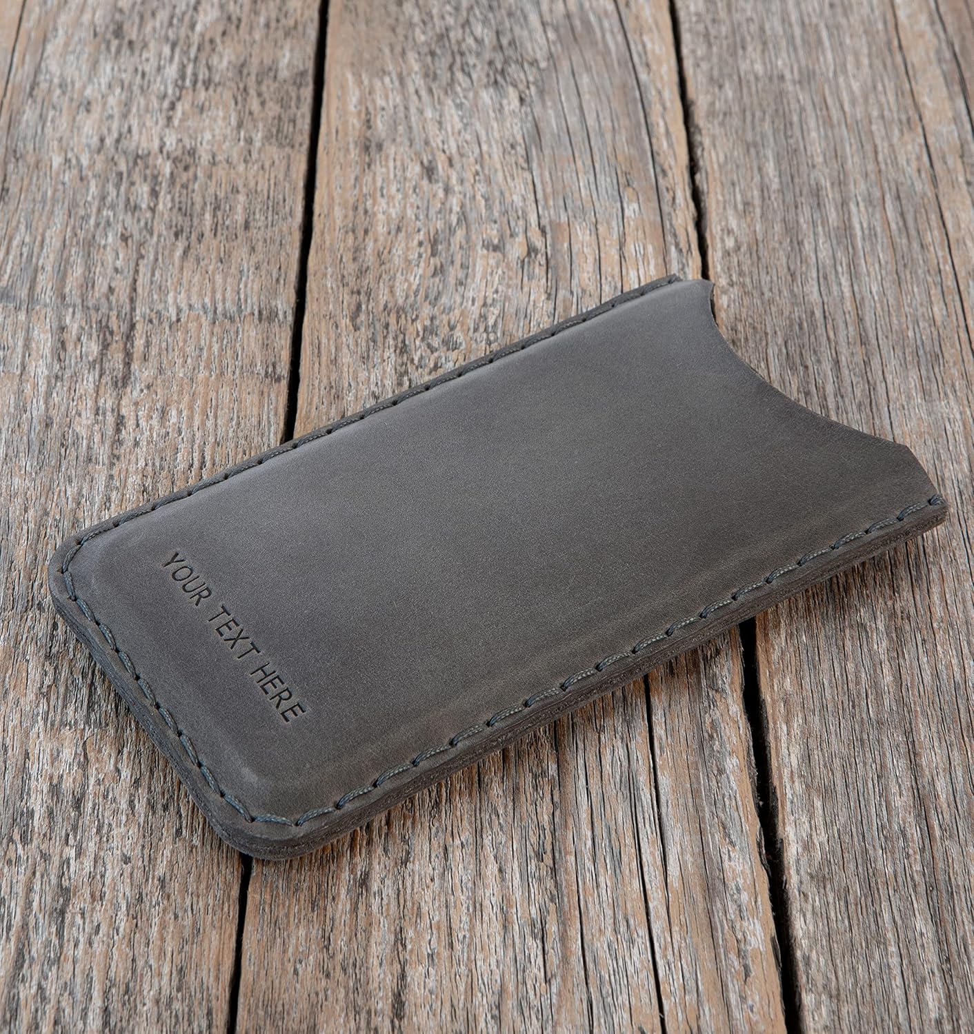 THIS LEATHER COVER IS FOR "NAKED" PHONE WITHOUT ANY ADDITIONAL SILICONE / PLASTIC CASE ON IT. If you are looking for a unique yet professional phone case, then here is your match! Made with the genuine waxed leather, this case is handmade and secured using rivets on the outer seams. *Leather case can be custom fit for any phone you have. Please specify your exact model. Add your initials, personalize it! *PERSONALIZATION INSTRUCTIONS: Please enter me your name, initials or any word in the drop-down menu during checkout. 14 characters are the maximum! If you need longer engraving, please let me know. I use "TAHOMA" font, size 16 (5 mm high). I also can incorporate numbers and the following special characters: & ♥ ’ ° ” + - / , . ? ! All letters are UPPER case. - Add initials for you or a friend - Engrave your name or friends name - Emboss personal motto or phrase I try my best to find only the highest quality leather for all of our products. The leather for this case measures in approximately 2 mm in thickness, so you know this pouch will be strong and durable. Not only will the leather case maintain itself well but it will also keep your phone very secure. This snug fit allows your phone to stay free of dust, scratches, and other damages. Please note upon purchase that no two pieces of genuine leather are alike; this is what differs genuine leather from the manmade material – genuine waxed leather will vary in texture and markings for every single piece. Therefore, upon purchase your item may slightly vary from the one pictured since the item I have in stock may not be the item pictured. Happer Studio is a small, family run business. We specialize in handmade leather bags, sleeves, laptop cases, and accessories. We focus on high-quality products and customer service, and we can’t wait to do business with you!