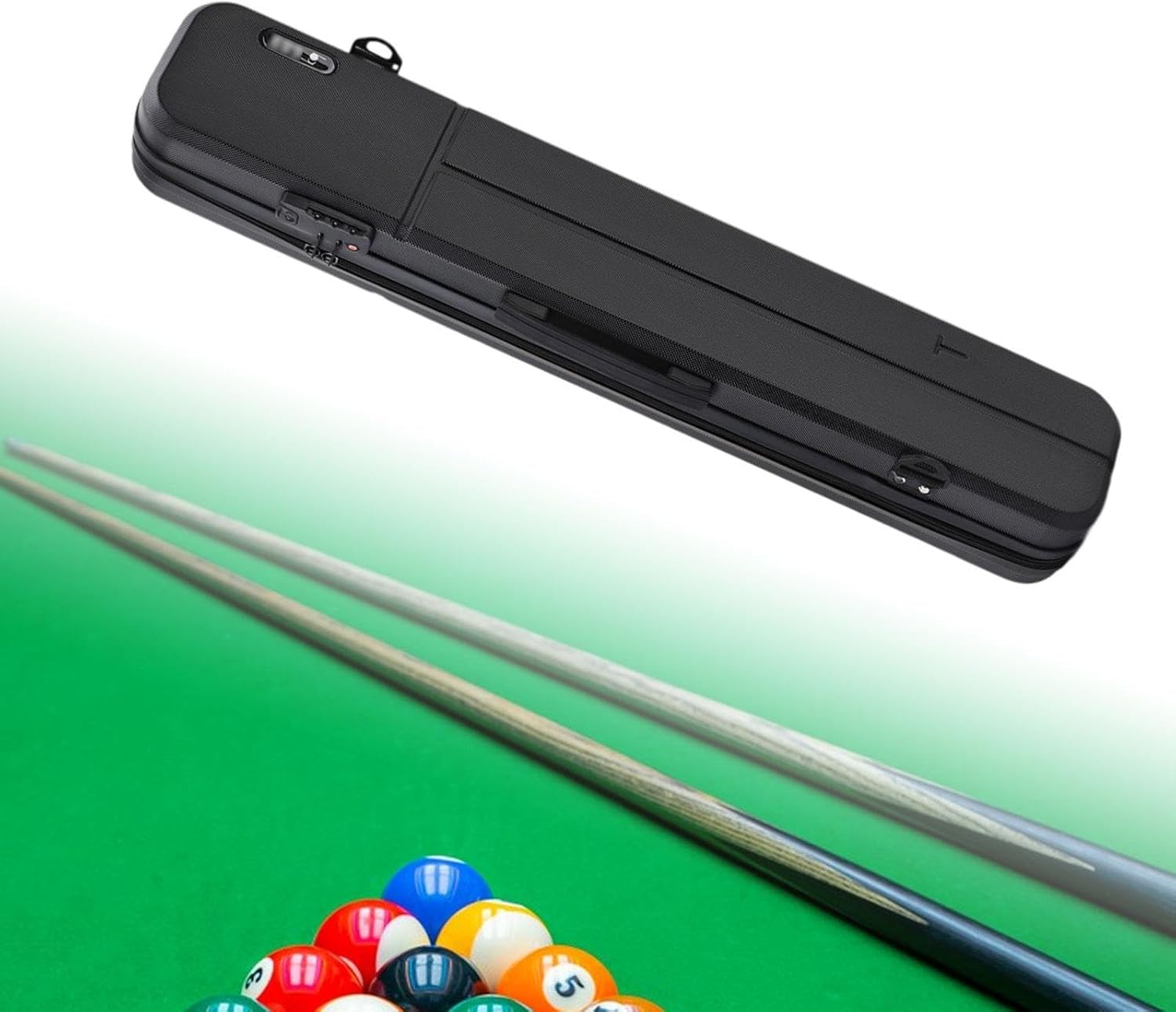 Description:- 【Reliable Construction】: Constructed with multi layer thickened pp materials, this offers protection and long time durability for your billiard cues.- 【Spacious Multi Pocket Design】: This pool features a spacious interior with multiple compartments and layered pockets, allowing you to organize and store several cues securely at once.- 【With Compartments】: The billiard pole carrying case with individual slots prevent cues from or rubbing against each other, keeping them neatly separated and minimizing wear.- 【Enhanced Protection】: The billiard pole carrying case enhanced shockproof padding with built in foam effectively absorbs impacts from external forces, ensuring your cues remain during transport.- 【Convenient Portability】: Lightweight design paired with a detachable shoulder strap makes carrying effortless; equipped with a secure three digit combination lock for added peace ofSize Chart:90cmx12cmx17cm/35.43inchx4.72inchx6.69inchPackage Includes:1 Pool