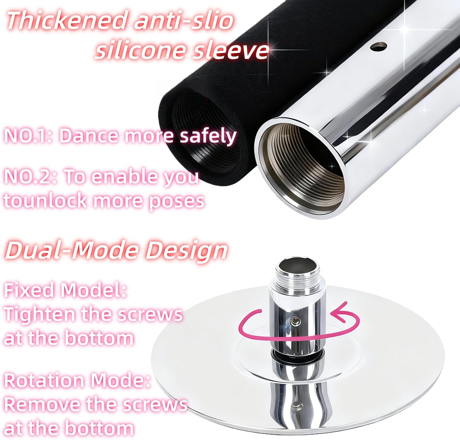 Introducing the CICIPIPI Portable Professional Silicone Dance Pole Kit—your ultimate solution for fitness, dance, and strength training. Engineered for versatility and safety, this pole combines cutting-edge design with user-friendly features to transform any space into a personal studio. Key Features & Benefits:Rotating & Fixed Modes: Switch between smooth 360° rotation for dynamic routines and stable fixed mode for static exercises, catering to pole dancing, yoga, or calisthenics.Adjustable Height (7.2ft–9ft): Effortlessly extend or retract the pole with precision-lock mechanisms to accommodate ceilings from residential rooms to commercial gyms.Professional-Grade Silicone: The silicone finish ensures a comfortable grip, even during sweaty workouts, while preventing slips or discomfort.Portable Convenience: Weighing just 35.3 lbs (16 kg), the detachable components pack neatly into the included travel bag—ideal for on-the-go dancers or compact living spaces.Universal Compatibility: Fits most indoor settings with non-marking rubber bases and pressure-mounted installation. No drilling required!Safety First: Rigorously tested to support up to 330 lbs (150kg), featuring reinforced steel cores and anti-slip technology for worry-free use. Brand & Origin: Designed by CICIPIPI, a leader in fitness innovation, this dance pole kit is meticulously crafted to meet quality standards. Origin: Made in China. Ideal For:Home Fitness EnthusiastsProfessional Dancers & TrainersGyms & Clubs Elevate your fitness journey with CICIPIPI—where performance meets portability. Order now and dance your way to strength and grace!