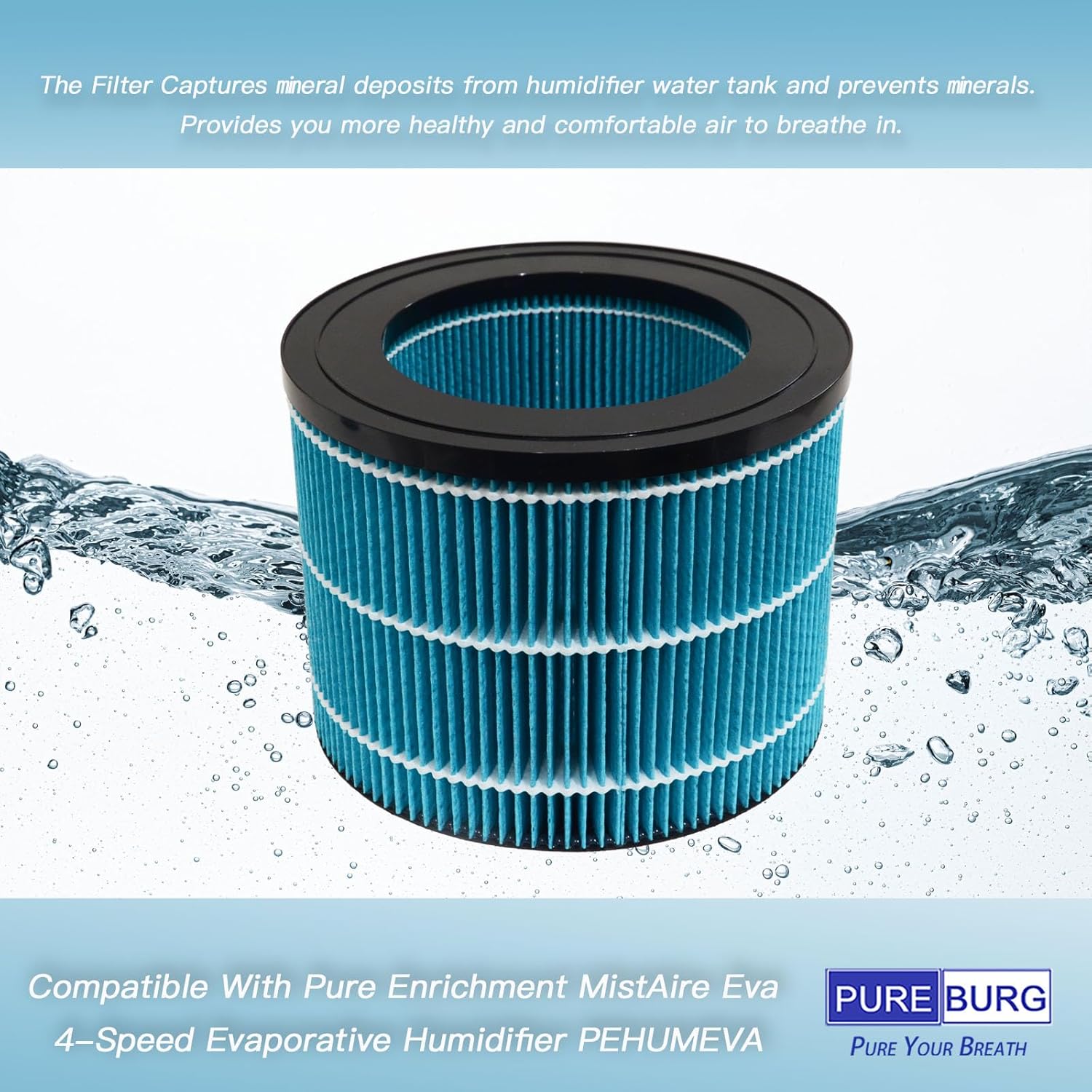 PUREBURG Replacement Humidifier Filter Compatible With Pure Enrichment MistAire Eva 4-Speed Evaporative Humidifier PEHUMEVA, 2-Pack Press and hold the Power button for 3-5 seconds to reset the Filter Reset indicator. Any brand names or logos are the registered trademarks of their respective owners. Any use of any brand name or model designation for this product is made solely for purposes of demonstrating compatibility. PUREBURG - Pure Your Breath! We value your satisfaction. If you have any problems using our product, please always contact us.