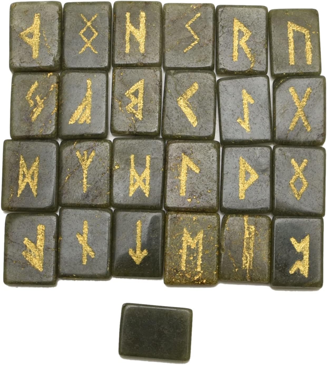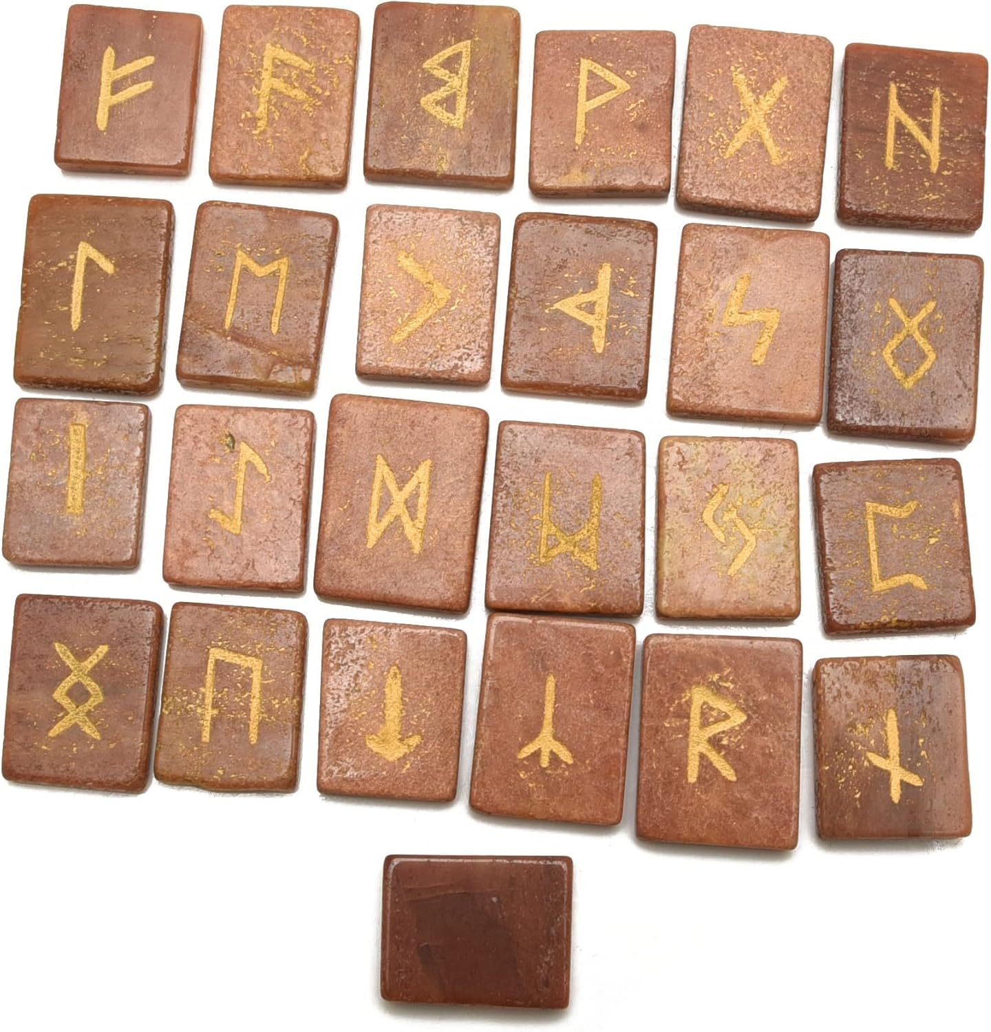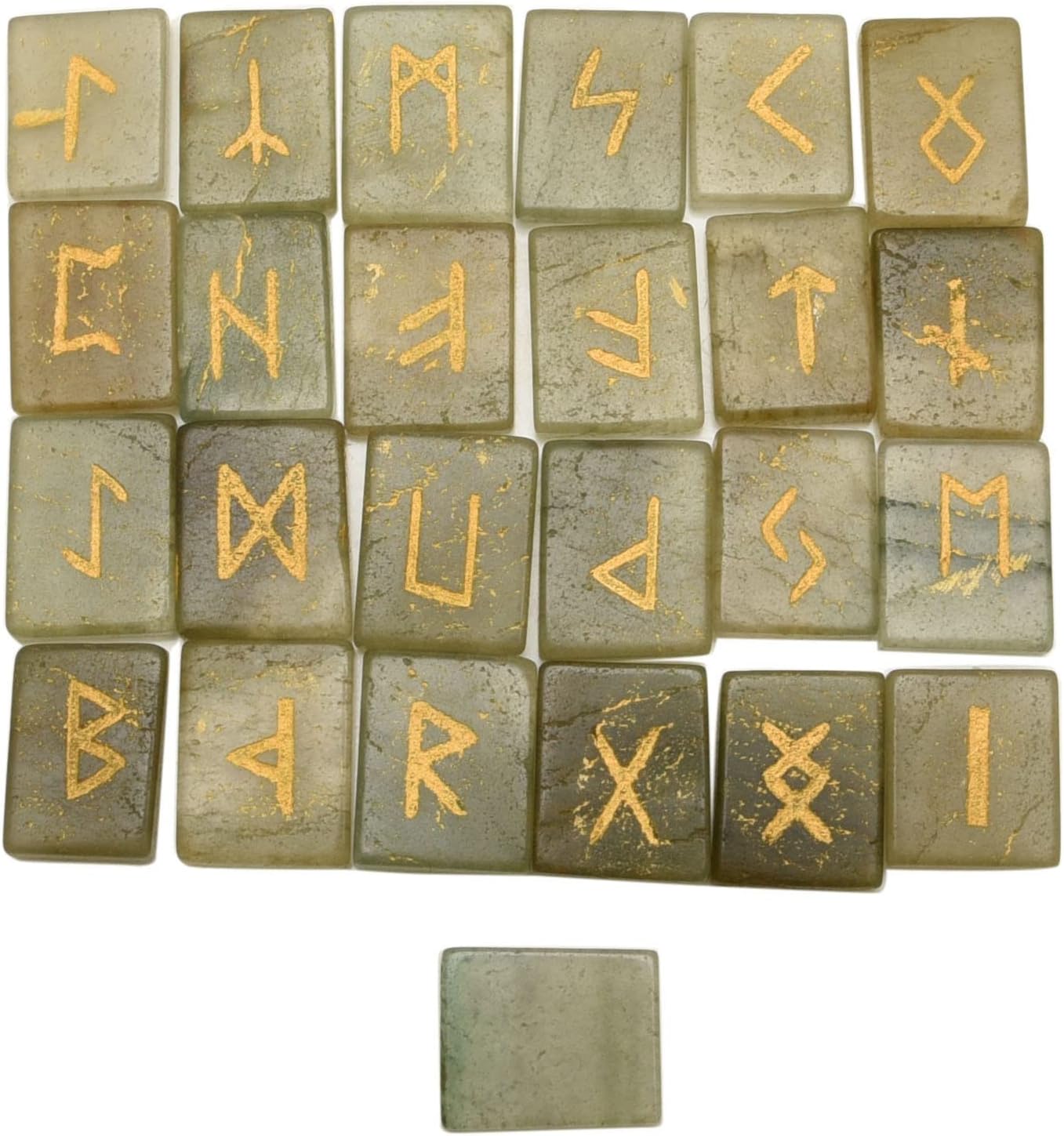 * Stones Set (25 Pieces), Rectangle Shape Flat Gemstone with Carved Rune Alphabet Symbol.* Ideal gift for crystal collectors as present on birthday, Christmas, Valentine's Day, Mother's Day, Easter or Father's Day.