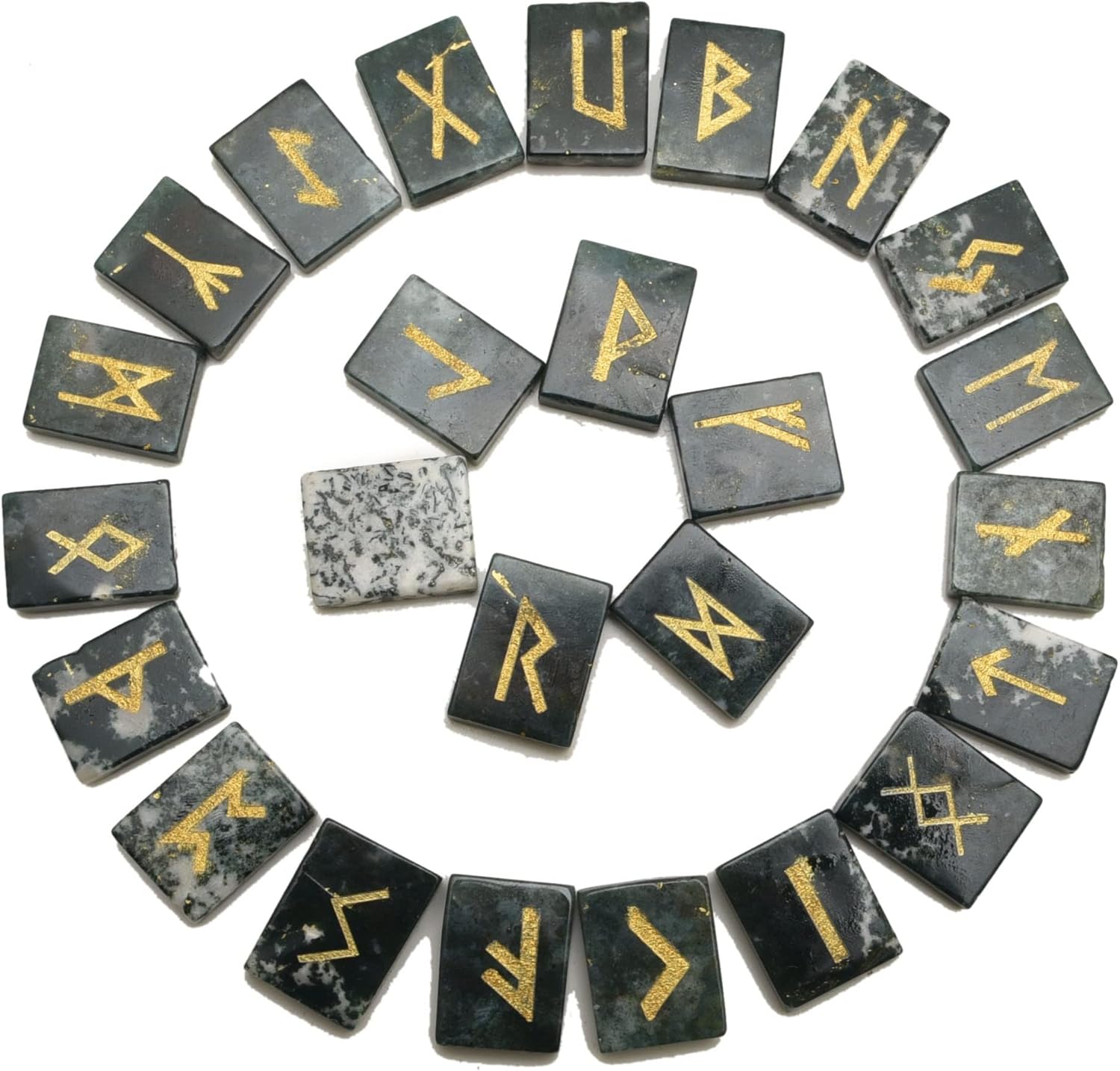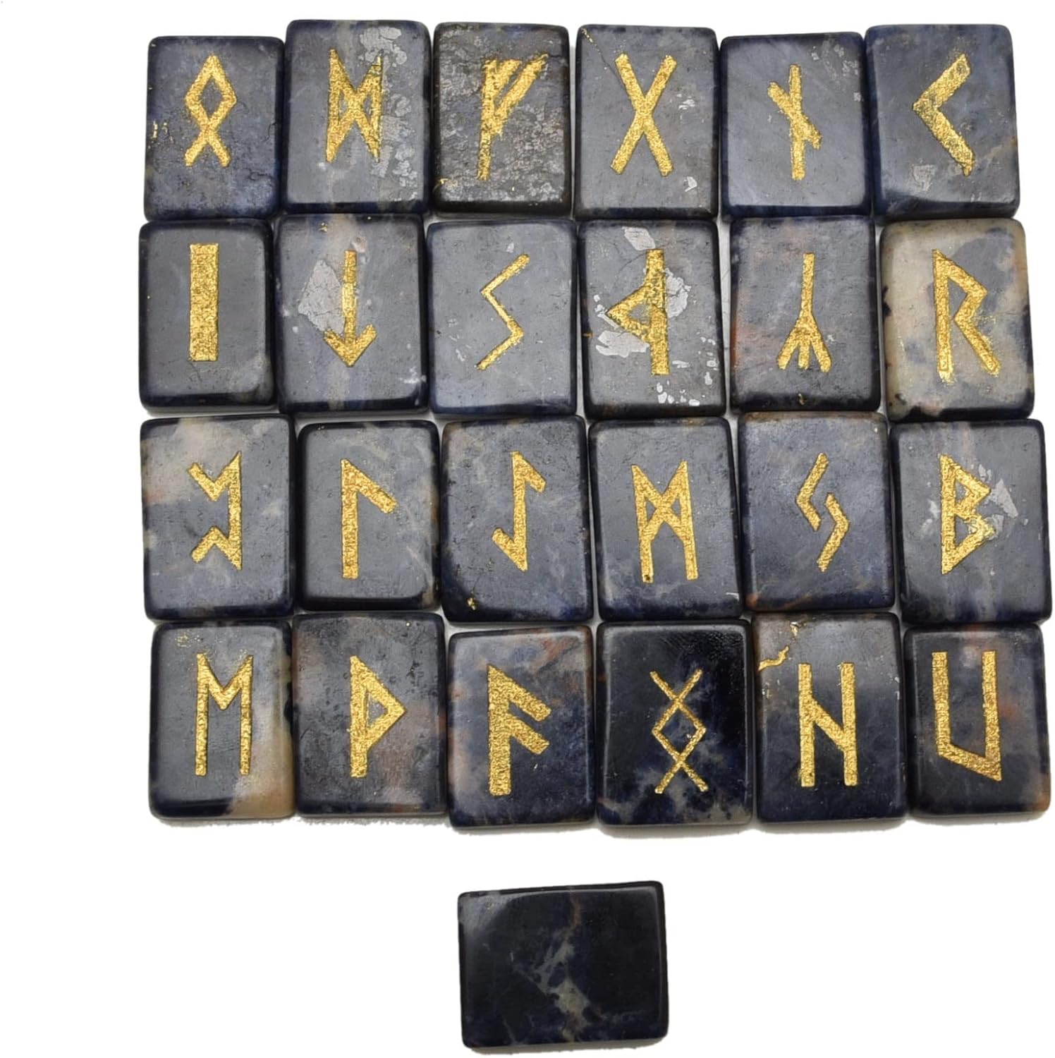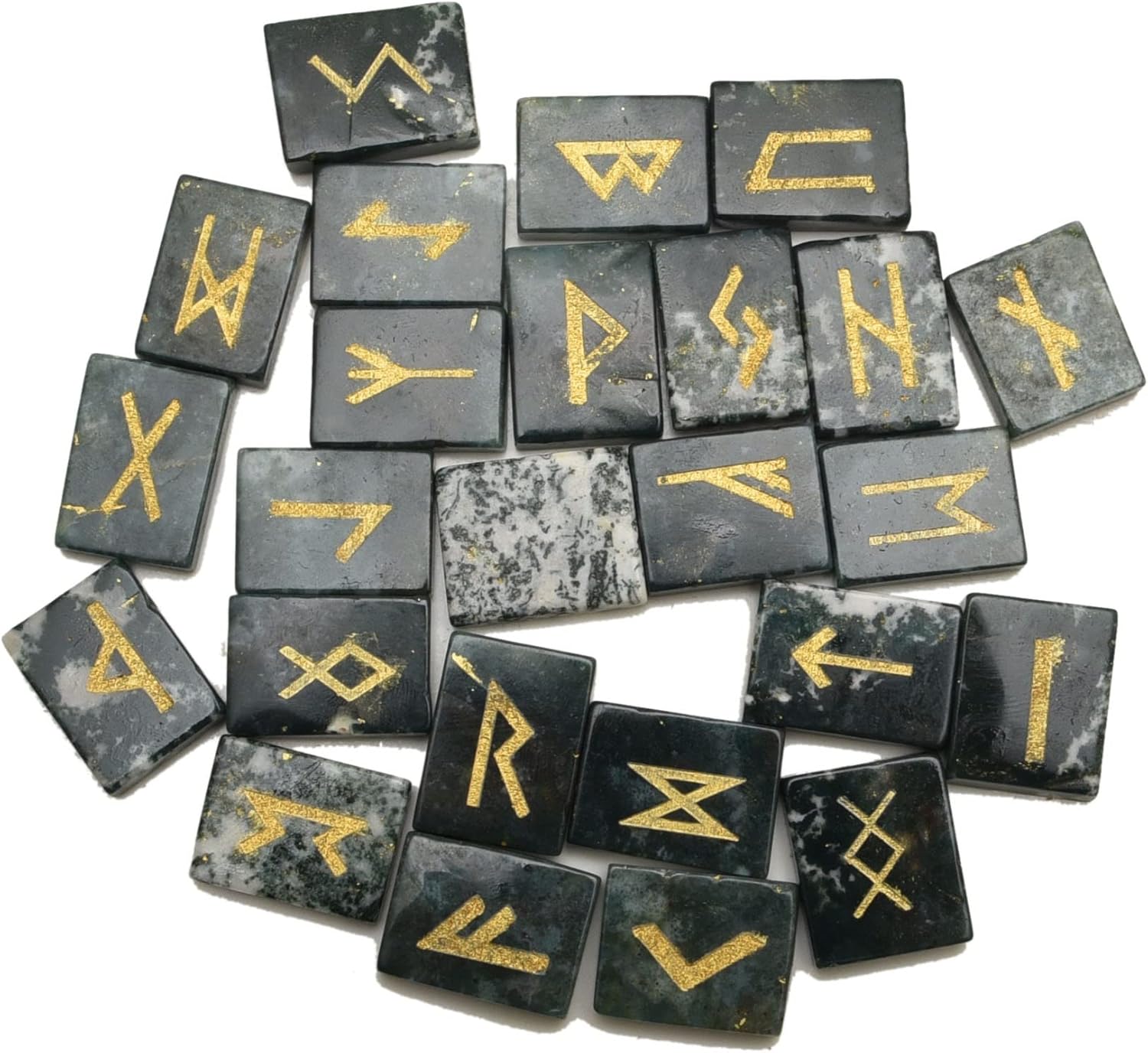 * Stones Set (25 Pieces), Rectangle Shape Flat Gemstone with Carved Rune Alphabet Symbol.* Ideal gift for crystal collectors as present on birthday, Christmas, Valentine's Day, Mother's Day, Easter or Father's Day.