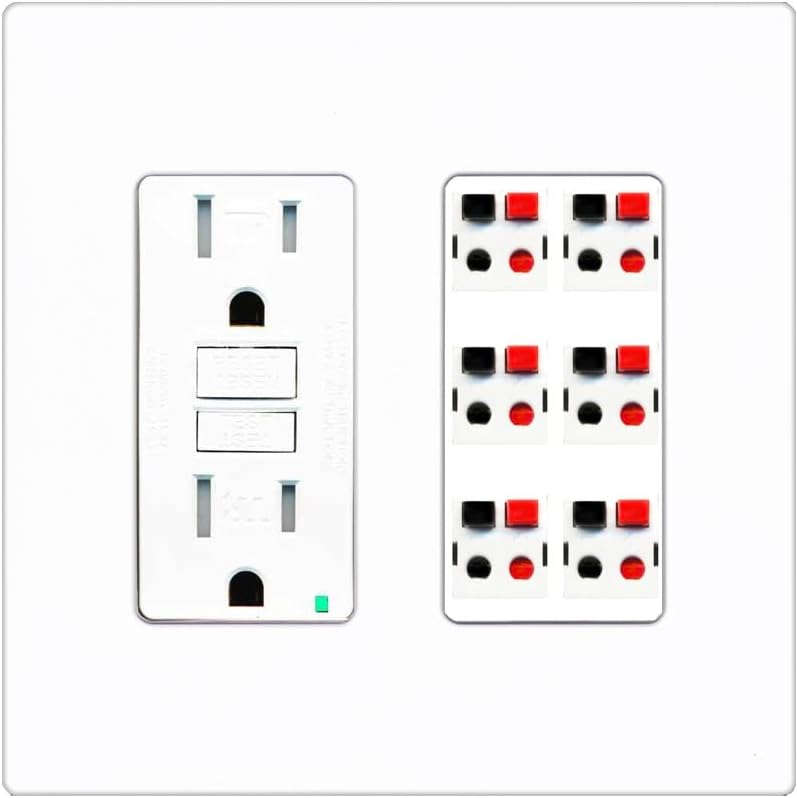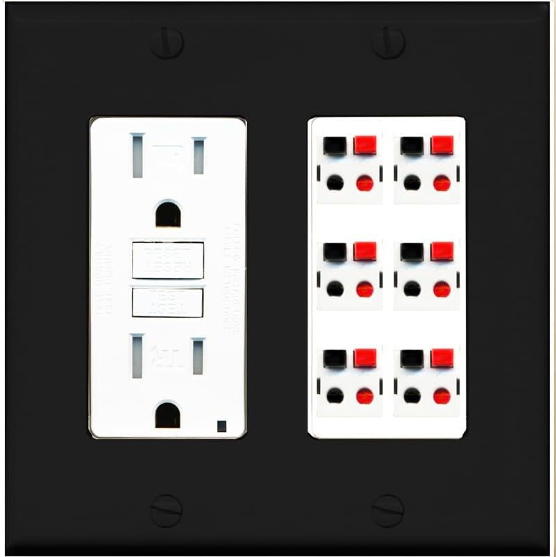 | Included Components | 15 Amp/125V GFCI Outlets, 2 Gang Frame, 6 x Female Jacks (Assembled), Screws |