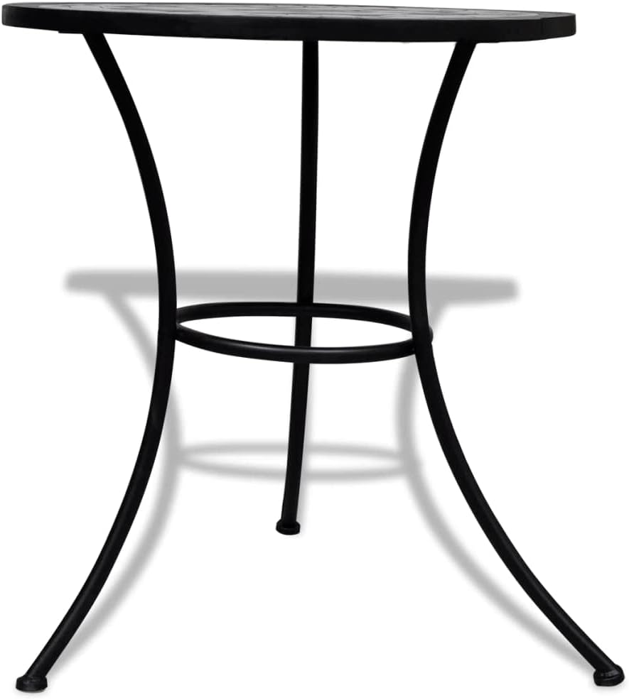 Color: Black Pattern: Geometric (A pattern featuring geometric shapes like triangles, squares, and circles)Shape: RoundMaterial: Metal Powder-Coated SteelFinish: Powder-Coated Indoor/Outdoor: Indoor / OutdoorCover Included: NoRoom: Garden and terraceMaximum Number of People: 1Dimensions: 23.6 x 23.6 x 27.6 in (W x D x H)Surface Height: 0.4 inLeg Height: 27.6 inWeight: 33.07 lbsDelivery Contains: 1 Bistro TableAssembly Required: YesRecommended Number of People for Assembly: 1
