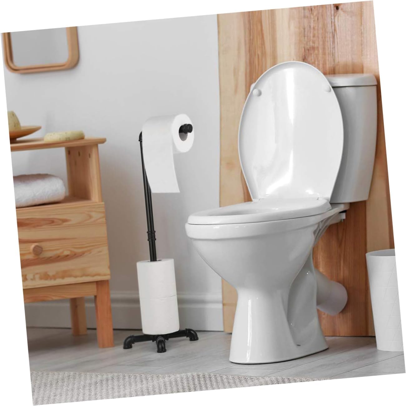 Package List 1 x Paper Towel Holder Features -Material:Iron paper towel holder -Color:Black standing holder -Size:63.00X22.00X22.00cm/24.76X8.65X8.65in bathroom gadget - Made with iron construction, the paper towel rack brings durability, ensuring long-lasting use toilet tissue holder. - With ample storage space, it allows for easy replacement and convenient access to toilet paper whenever needed metal paper towel holder. - The versatile rack is designed to efficiently organize toilet paper, tissues, and so on paper towel rack. - The stylish exterior of the rack complements any bathroom decor, adding a touch of elegance to the space standing paper towel rack. - Its vertical design is specifically created to maximize space utilization in bathroom corners or against walls, making it a space-saving bathroom towel rack.Goods Informationtowel vertical design allows it to take up minimal space, making it convenient for storage.standing paper towel rack The simple shape adds a touch of simplicity and fashion, making it suitable for various decoration styles.towel holder stand The sturdy base stability and prevents sliding.toilet paper holder The vertical metal paper towel holder is a practical and stylish addition to any bathroom