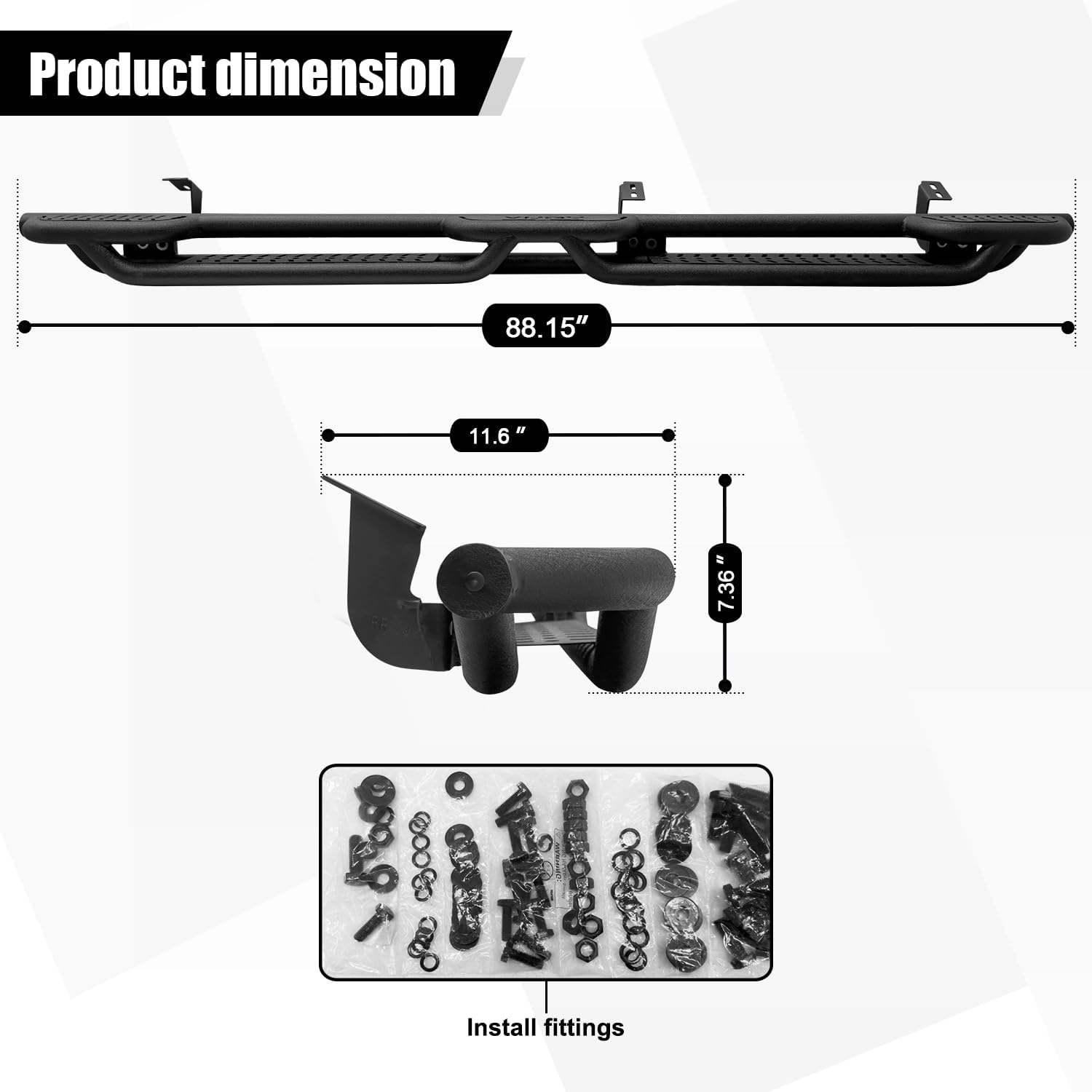 | Included Components | 1 set of side steps (left and right)+Mounting Hardware+Installation instructions |