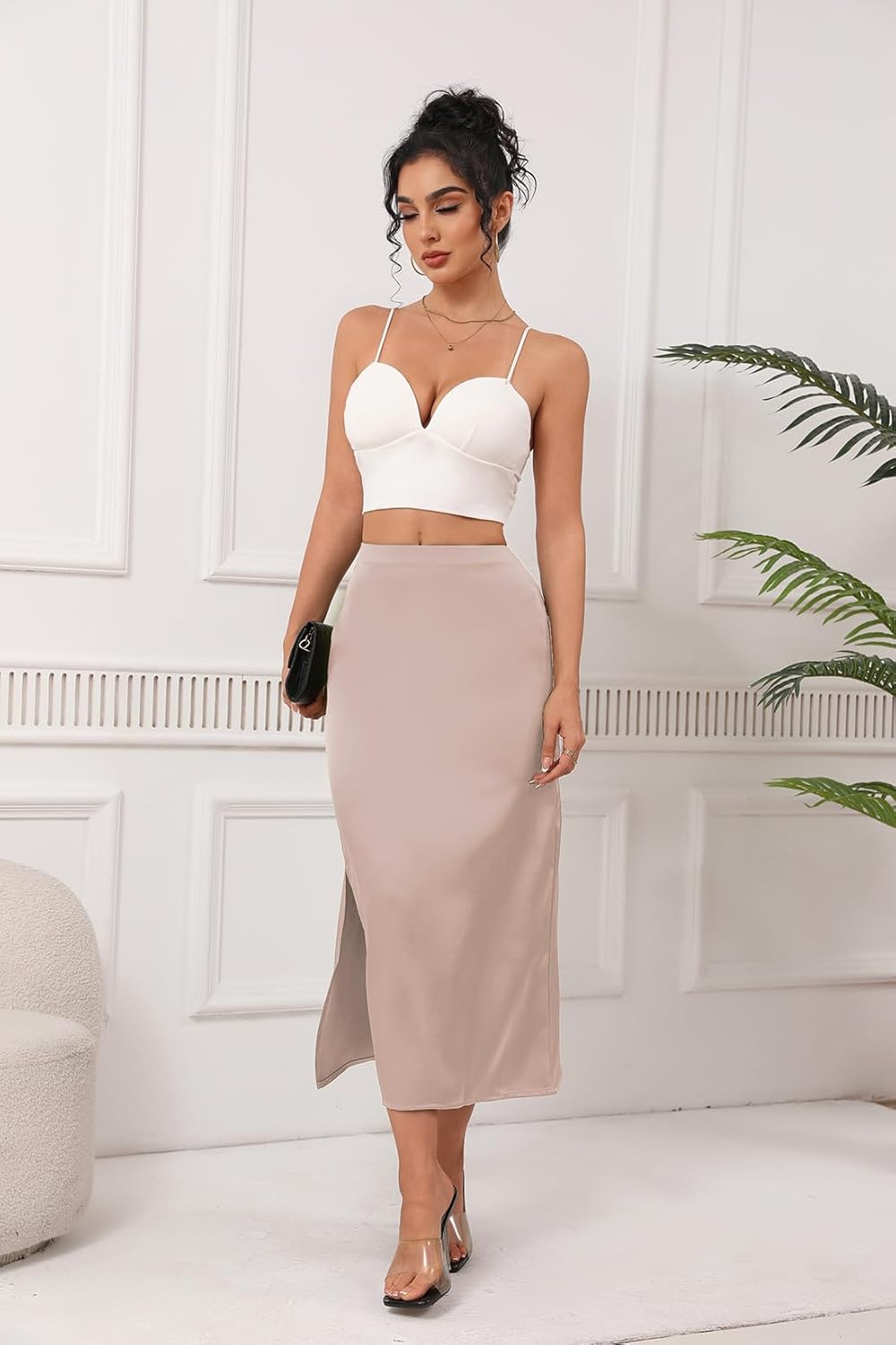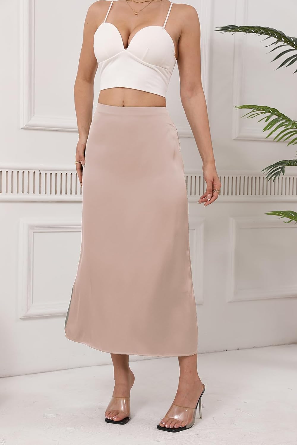 MATERIAL:Satin Silk Slip Maxi Skirt When you are still hesitating and thinking about how to dress better when you go out today, if you want to change your style, you can take a look at this Satin Skirt. It can dress according to our mood, whether it is to go out for work or a date, or to go shopping or traveling, it will be our wardrobe choice"